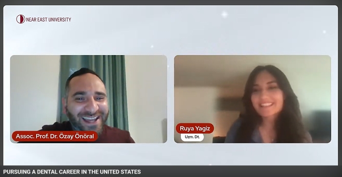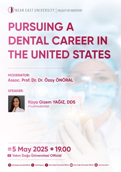 Organized by the Near East University Faculty of Dentistry, the webinar titled “Pursuing a Dental Career in the United States” brought our students and graduates together with valuable insights into professional pathways abroad. Moderated by Assoc. Prof. Dr. Özay Önöral, Vice Dean of our Faculty, the webinar featured Dr. Rüya Gizem Yağız, a graduate of Ankara University Faculty of Dentistry, who completed her specialty training in prosthodontics at Karadeniz Technical University and is currently continuing her career in the United States. Held on 5 May 2025 and broadcast live on the University’s official YouTube channel, the event offered a comprehensive discussion on education, licensure, specialty training, academic opportunities, and alternative practice models for those considering a dental career in the U.S.