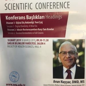 Diş Hekimliği Fakültesi bünyesi altında 18.03.2019 tarihinde, iki oturumda gerçekleştirilen Bilimsel Diş Hekimliği Konferansı’na konuşmacı olarak Georgia Medikal Koleji Diş Hekimliği Fakültesi’nden Prof. Dr. Arun Nayyar, DMD, MS katılmıştır. Söz konusu konferans Diş Hekimliği Fakültesi Öğrencileri tarafından büyük bir katılım ve ilgiyle dinlendi.