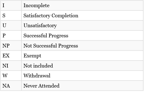 A grade of U (Unsatisfactory) is given to students who are unsuccessful in non-credited courses.