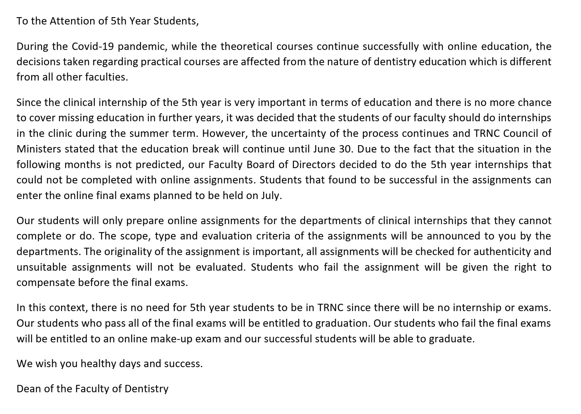 To the Attention of 5th Year Students