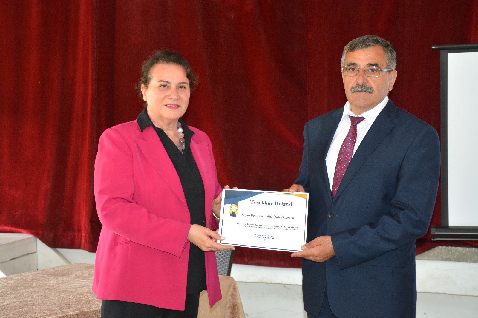 Dikmen Belediye Başkanı Yüksel Çelebi’nin de katılım sağladığı seminerde, kanserle mücadele ve toplum sağlığı konuları ele alınarak sağlıklı yaşam tarzının teşvik edilmesi ve kanserle başa çıkma yolları konusunda bilgiler verildi. Ayrıca, “Ağız Kanserleri İçin 7 Adımda Kendi Kendini Muayene”, “Meme Kanseri Farkındalığı”, “Kansere Dost ve Düşman Besinler” ve “Kanser Kaderimiz Mi?” gibi önemli başlıklarla ilgili sunumlar yapılarak katılımcıların farkındalığının artırılması hedeflendi.